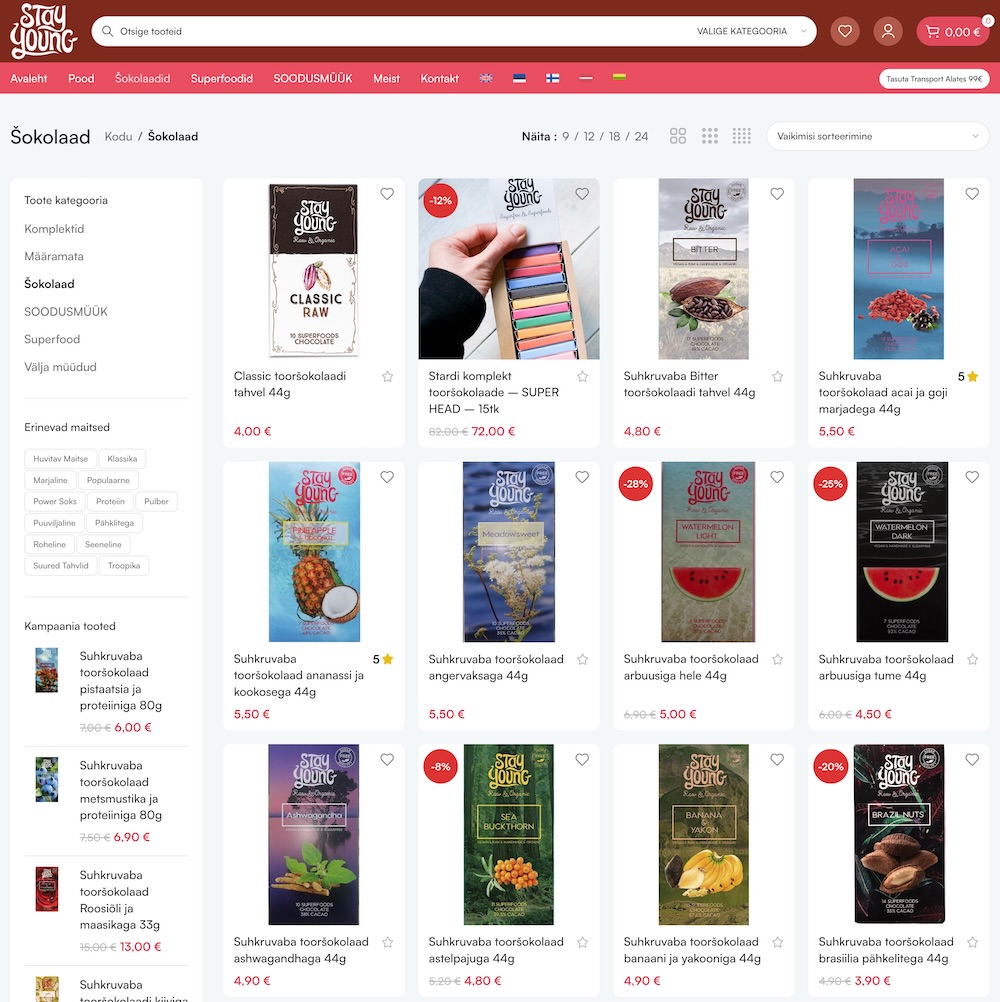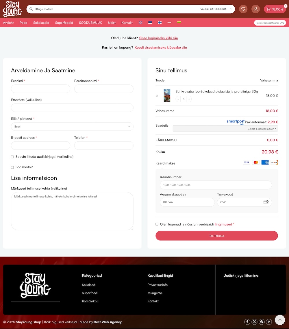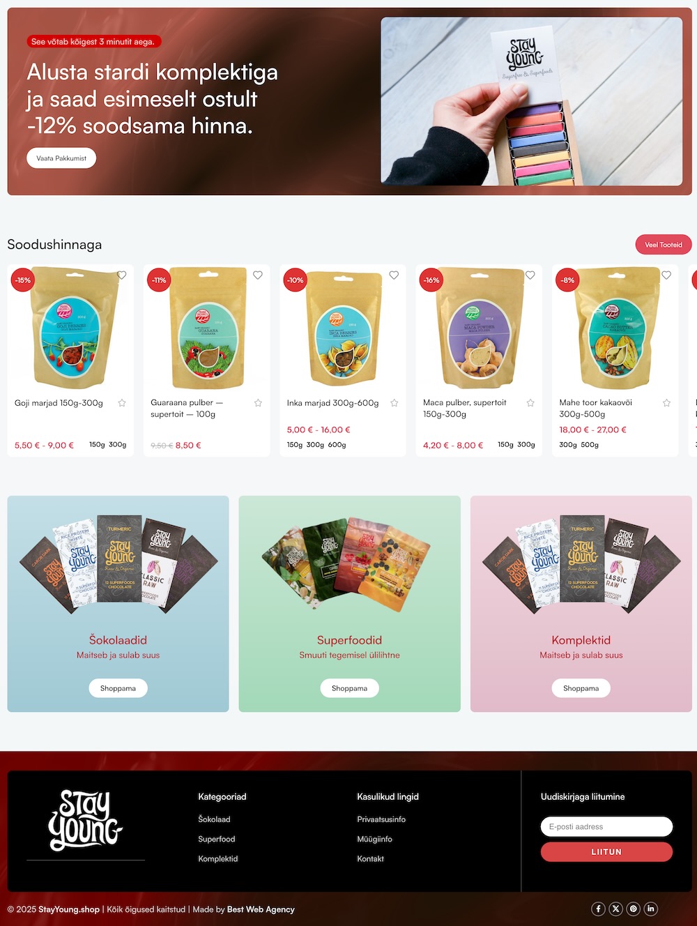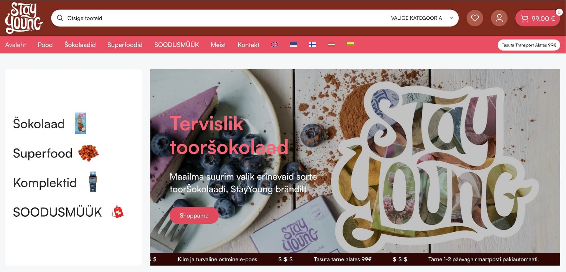 One of the boldest natural lifestyle brands in Estonia, StayYoung, has entrusted the BestWeb.agency team as its WooCommerce e-store development partner. The project was born out of the need to build a new, modern and fast e-commerce platform to support the sale of raw chocolates and superfoods in four language markets – Estonia, Finland, Latvia and Lithuania.