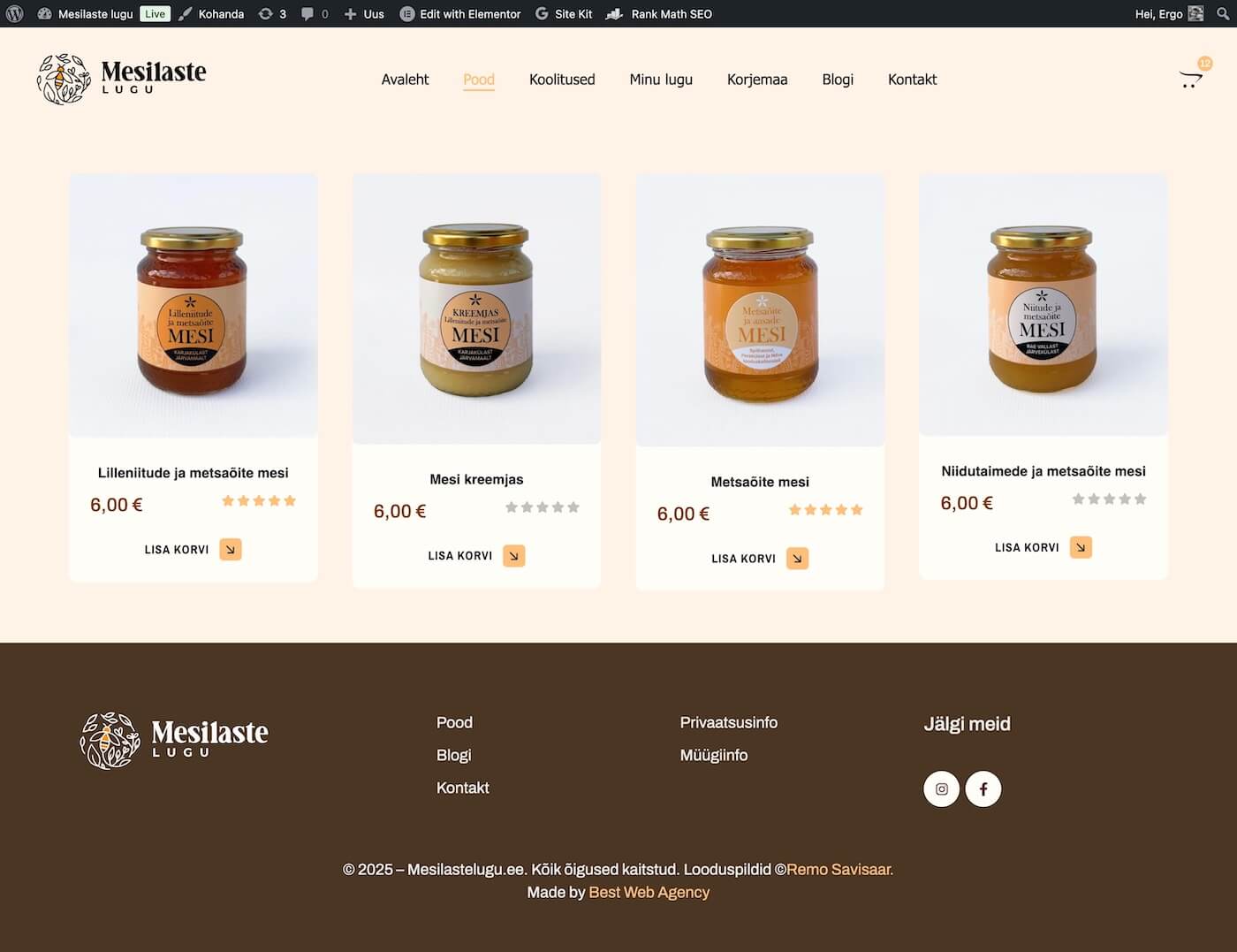 Mesilastelugu.ee vajas kaasaegset, usaldust loovat ja harivat kodulehte koos lihtsa e-poe lahendusega, mis ühendaks endas mesindusloo, kohalikud mesindustooted ning selgelt struktureeritud info õpetajatele, lapsevanematele ja mesindushuvilistele. BestWeb.Agency ülesanne oli luua visuaalselt soe, loogiline ja kasutajasõbralik veeb, mis aitab brändil kasvada ning klientidel kiiresti leida toodet, teenust või infot, mida nad otsivad.